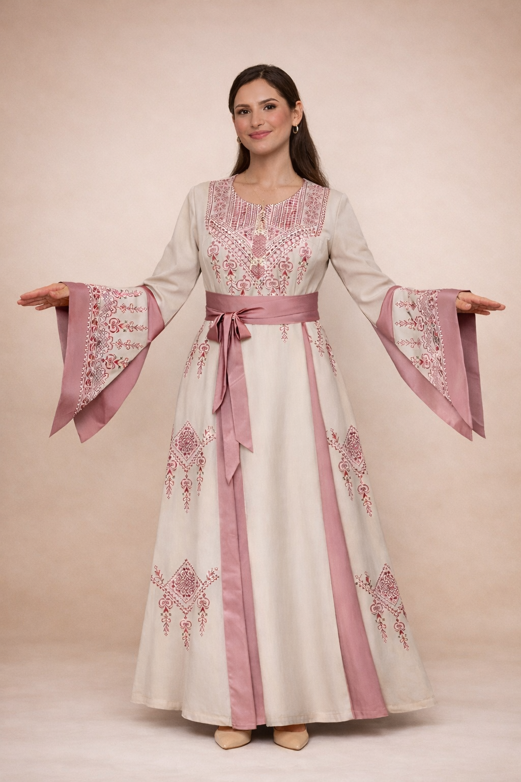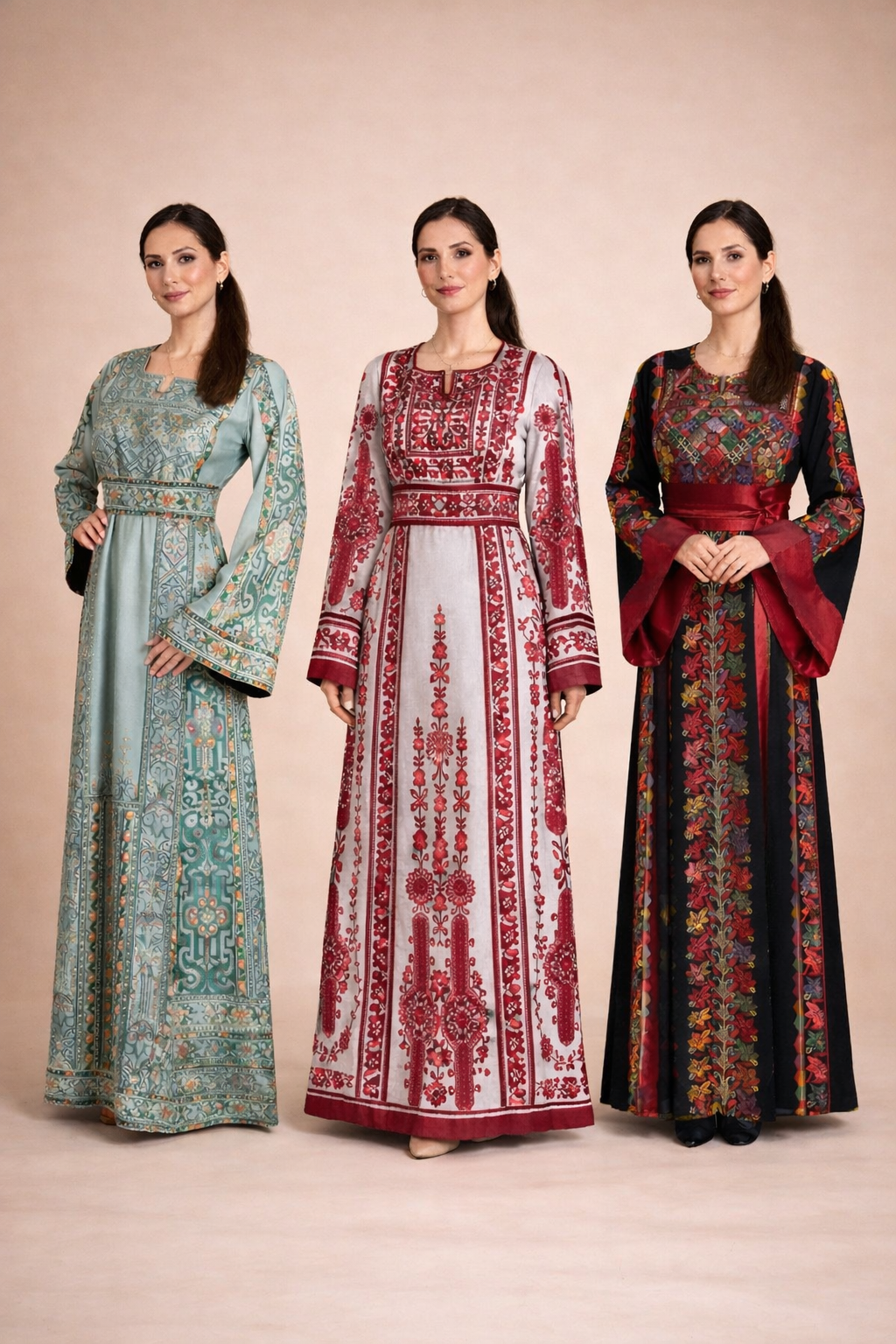Unsere palästinensischen Thobes sind mehr als Gewänder. Sie verkörpern Geschichte, Identität und zeitlose Eleganz.